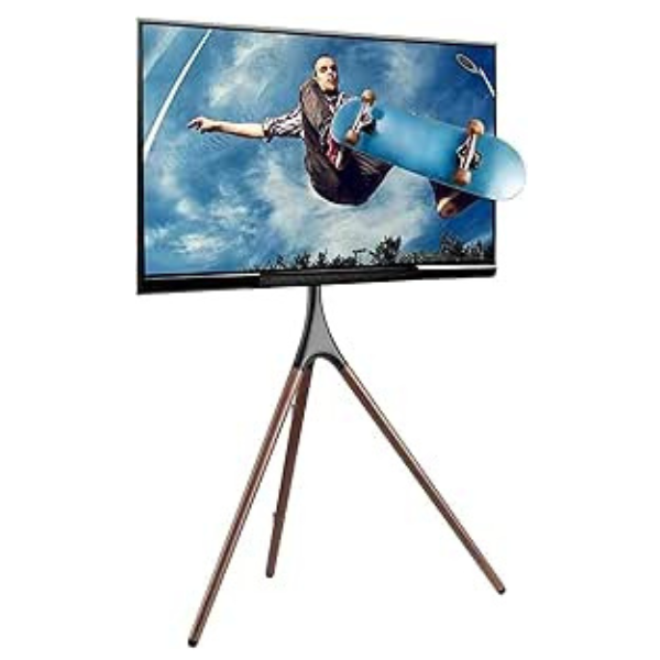 SKY-TOUCH 45″-65″ Easel TV Stand with Tripod Base,Height Adjustable Swivel TV Floor Stand, Dark Walnut Legs,for LED LCD Screens, Max VESA 600x400mm, 77lbs Capacity,(Install Manual Included)