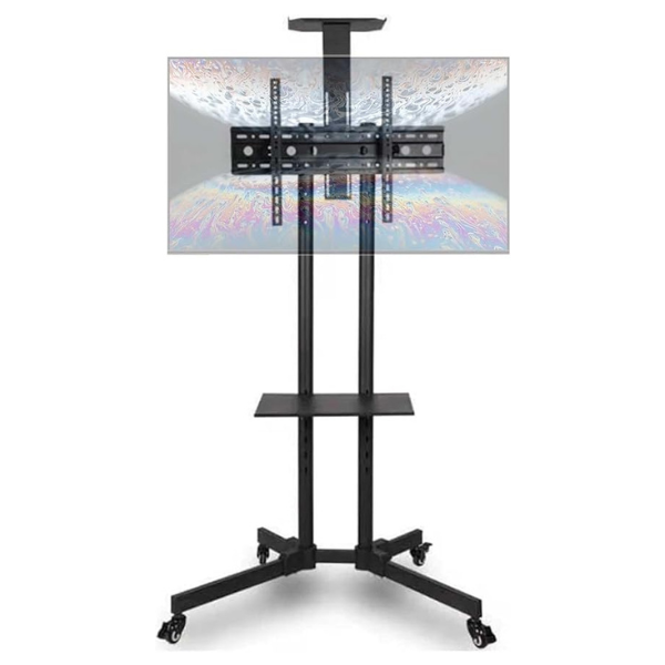 SKY-TOUCH Mobile TV Stand Rolling TV Cart for 32-65 Inch,Height Adjustable Floor TV Stand,Lockable Wheels&Removable Shelf for LCD LED 4K Flat Curved TV,110 lbs,Max VESA 600x400mm,180x76x56cm,Black