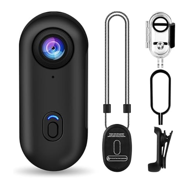 Thumb Action Camera 4K, Mount Anywhere, Small Body Camera with Spring Clip, Vlogging camera, Hands-Free POV Recording, Helmet Cam for Cycling, Motorcycle Tiny Pocket Vlogging Portable Hands