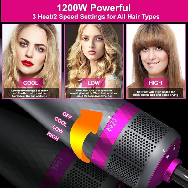 • 【ADJUSTABLE 3 HEAT/2 SPEED SETTINGS FOR ALL HAIR TYPES】With 3 heat (140/210/350℉) and 2 speed (LOW/HIGH) settings, you can customize the heat and speed to achieve natural lustrous looks according to your hair type, COOL setting for soft/fine/thin hair or set the hairstyle at the end of drying, LOW setting for semi-dry/normal hair, HIGH setting for thick/coarse hair and quick drying.