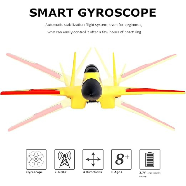 • SMART GYROSCOPE: Our on-board smart gyroscope in rc planes for adults and kids provides assisted flight stability, so you can maintain balance in the air. This advanced technology ensures smooth and controlled flights, even in windy conditions.