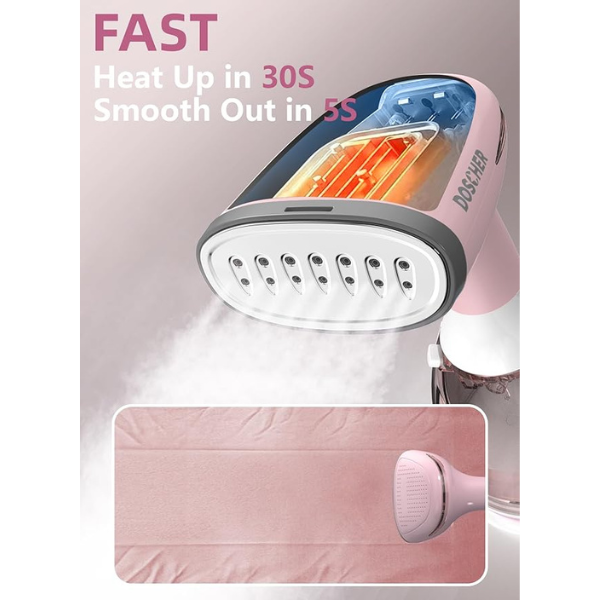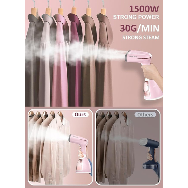 DOSCHER Garment Steamer Iron,High-Power Handheld Garment Steamer Clothes Steamer Portable Steam Iron 30s Fast Heat-up Ironing Wrinkle Remover -1500W 280ML
