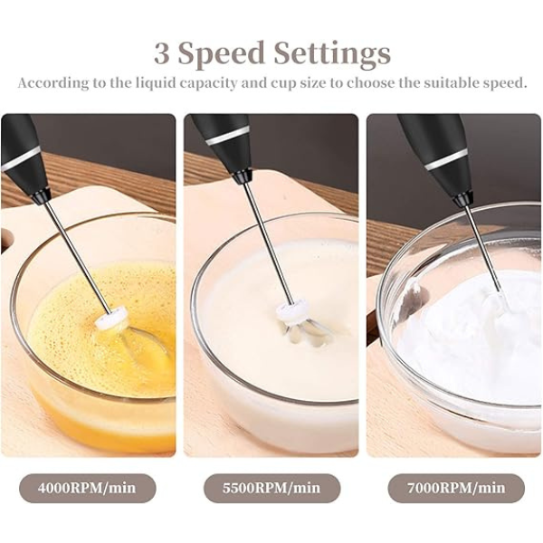 • 3 Speeds Settings]: Our frothing wand has 3 different speeds: 4000RPM, 5500RPM, 7000RPM, meet all your needs in different circumstances. The frother is perfect for coffee, keto, frappe, latte, cappuccino, and hot chocolate drinks. It also can whip cream and eggs as well.