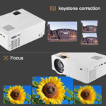 • 【Amazing Watching Experience】Placement of this projector is no longer limited to vertical placement, You can project the picture on the ceiling and lie down and watch it. Up to 200″ projection size with aspect ratio of 16:9/4:3, ±15°keystone correction, which Will provide a big-screen experience whether you’re watching a movie or a football game.Recommended for optimal projection: 2.5-4m( with sizes raning between 60 and 120 inches )