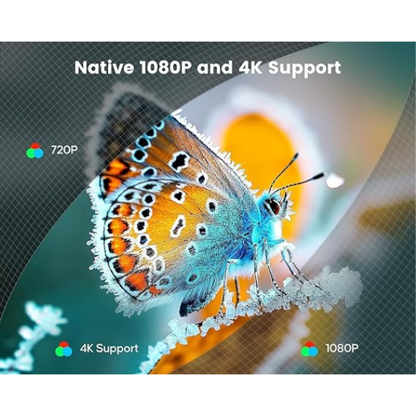 • Stunning Visuals: The HOUMT video projector supports 1080P resolution, offering exceptional image quality with vibrant colors. Advanced LED technology and uniform illumination minimize the impact of blue and direct light, making it safe for children’s eyes.