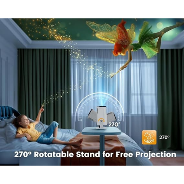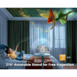 • 180° Rotatable Projector: The HOUMT HY320 mini portable projector can transform any surface into a cinematic screen. It rotates 180° to project onto walls, ceilings, or even the floor, providing an immersive viewing experience from any angle in your home.