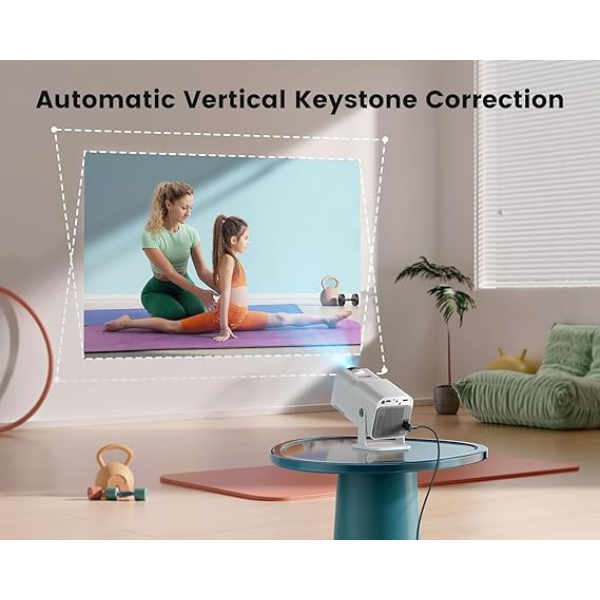 • Auto Keystone Correction: The HOUMT HY320 smart projector features automatic keystone correction and manual focus adjustment, ensuring a perfect picture quickly. With a maximum 150” screen display, it’s perfect for movie nights or gaming sessions.