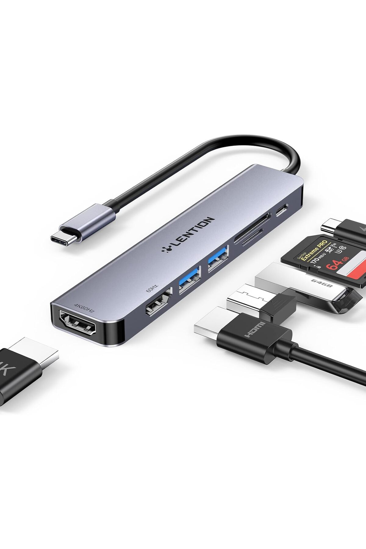 • LENTION 7-in-1 USB-C Hub with Dual HDMI, 5Gbps Data Transfer, 2 USB 3.0 Ports, PD 100W, Dual Card Readers for MacBook Pro, MacBook Air, Surface, and more.