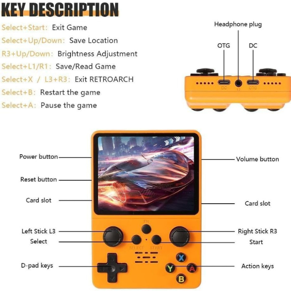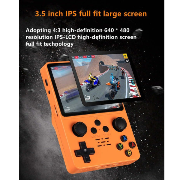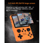 35S Handheld Game Console: The Ultimate Entertainment Experience in Your Hand 🎮 All-in-One Entertainment Device: Dive into an expansive world of entertainment with the R35S handheld game console. From intense online battles to immersive streaming media playback, it’s not just a game console – it’s a multifunctional entertainment powerhouse. 📺 Vivid Visuals: With a 3.5″ IPS screen boasting a high resolution of 640*480 and zero-distance CA full lamination technology, every pixel comes to life in stunning clarity. Whether you’re chasing game scores or watching your favorite movie, experience crisp, vibrant visuals like never before. 🕹 Classic & Contemporary Games: With over 10,000 pre-selected classic games, you’ll never run out of choices. Add to that the option to download and collect games, support for multiple emulators, and a wide genre span, you’re set for endless hours of fun. 💡 Powered by Precision: The high-precision joystick, combined with the multitouch screen design, ensures every move you make translates perfectly into the game. 🔥 Unmatched Performance: Equipped with a quad-core 64-bit Cortex-A35 processor that can ramp up to 1.8GHz, and combined with DDR3L 1GB RAM, every game runs flawlessly, ensuring you’re always in the competition. 🎧 Connect & Play: Engage more with a vibration motor, stream wirelessly or plug into the 3.5mm stereo headphone jack. With the R35S, connections are a breeze. Plus, the Type-C interface ensures rapid charging and data transfers. 🔋 Travel-friendly Gaming: A 3200mAh Li-polymer battery powers the R35S, allowing up to 8 hours of continuous use. Compact and lightweight, it’s your perfect travel companion, ensuring your game is always on, wherever you are. 🌈 Aesthetics that Reflect You: Available in four eye-catching colors, pick one that matches your style. Package Contents: R35S Pocket Game Console Type-C Charging Cable Comprehensive User Manual Experience a new dimension in handheld gaming with the R35S conso