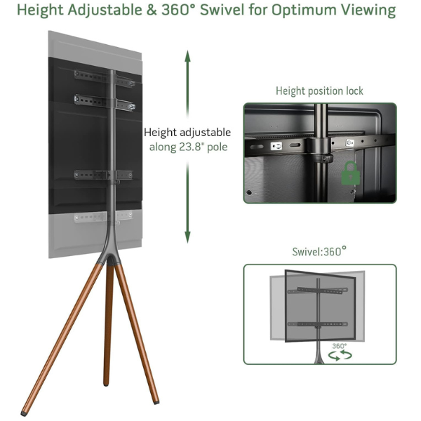 Be the first to review “SKY-TOUCH 45″-65″ Easel TV Stand with Tripod Base,Height Adjustable Swivel TV Floor Stand, Dark Walnut Legs,for LED LCD Screens, Max VESA 600x400mm, 77lbs Capacity,(Install Manual Included)”