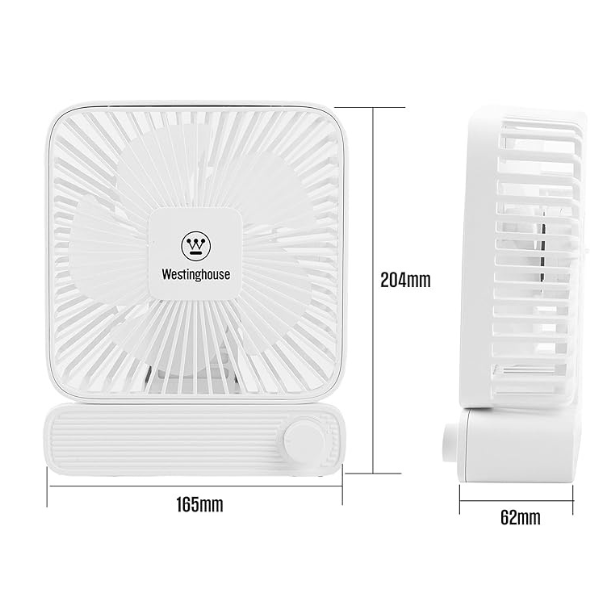 Be the first to review “Westinghouse Rechargeable Table Fan with Adjustable Speed Control Knob – Compact Square Design, Silent Operation, USB Powered, Portable Mini Fan for Desk, Office & Travel”